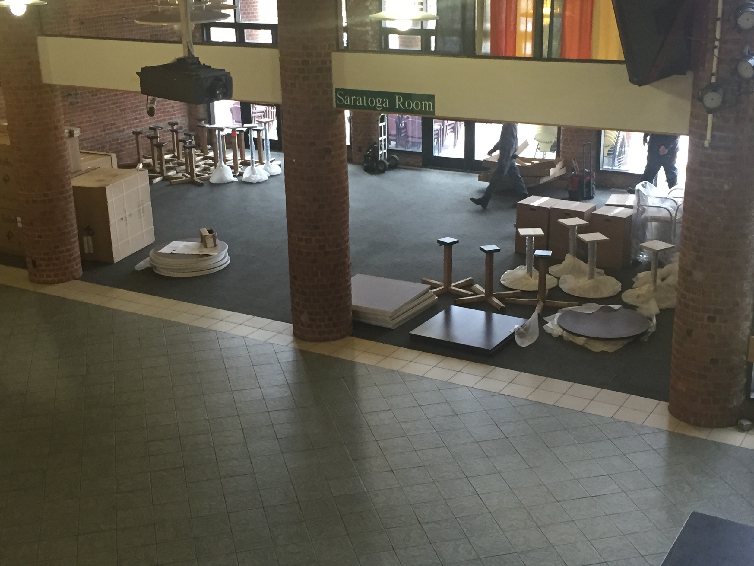 The new furniture for the Spa is very different then the old furniture as it includes couches and high top tables, in addition to the typical round and square and tables that sit multiple people.