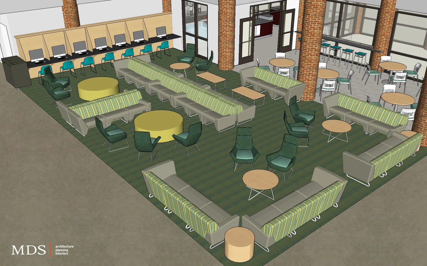Above is an image showing what the furniture on second and third floor of Case will look like.
