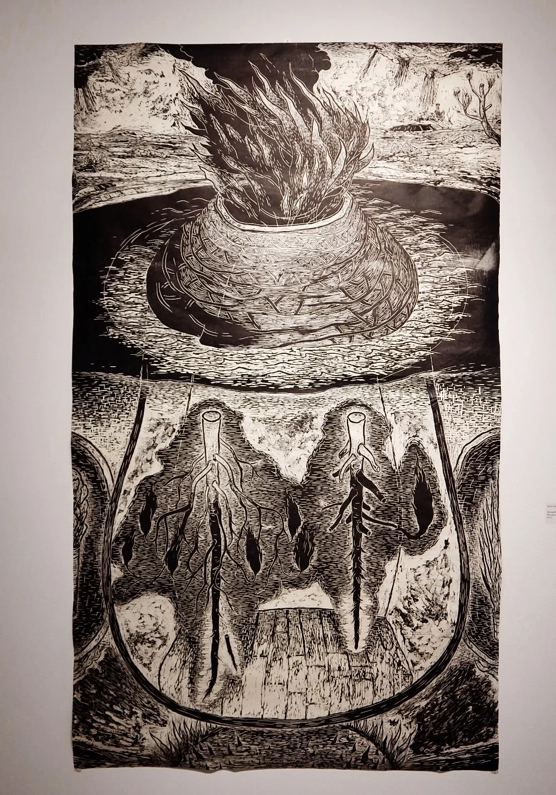 Sean Caulfield, Burning Roots, Woodcut, 2014
