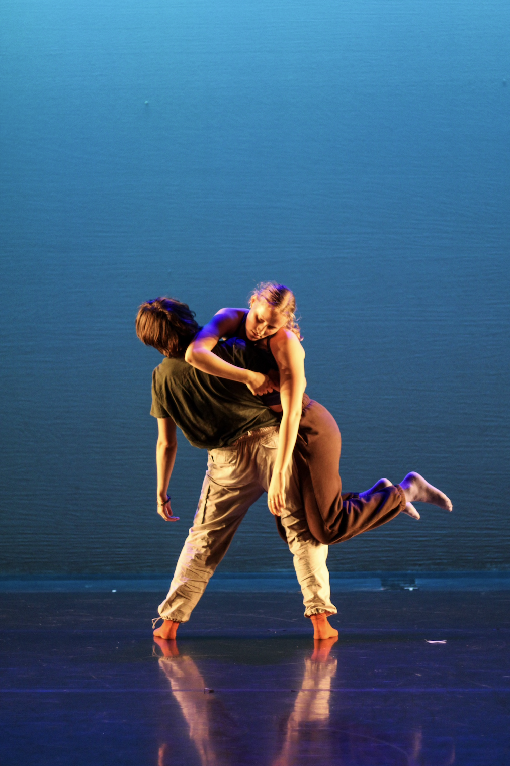Grace Laurine ‘25 and Augustine Goebel ‘25 performing a contact improvisation duet. Image courtesy of Allie Pape ‘27.