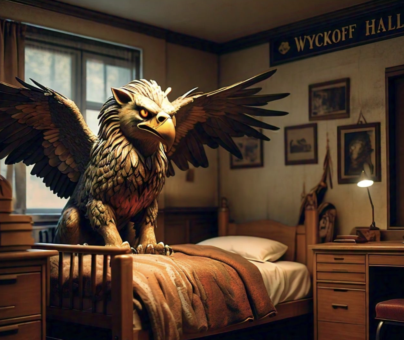 You know that feeling when you’ve smuggled a goldfish or hamster into your dorm, hoping to avoid the RA’s radar? Imagine that, but on a mythical level. As in, my pet isn’t even supposed to exist. Meet Arlo, my majestic—and slightly feral—griffin, currently residing in a makeshift nest under my bed. Sounds insane, right? Welcome to my life.