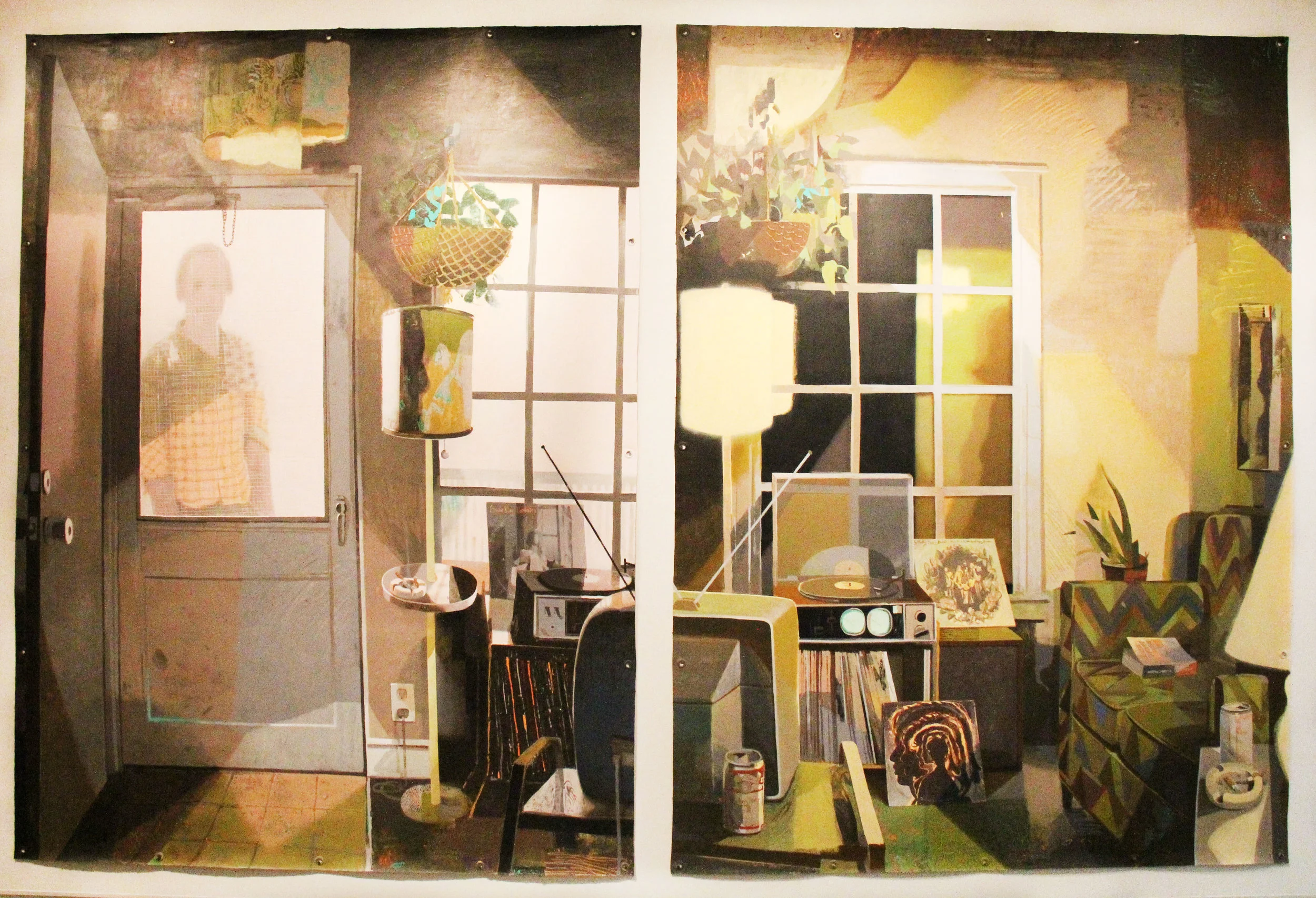 Brian in Nancy’s Room; Flashe, acrylic and collage on canvas; 2015
