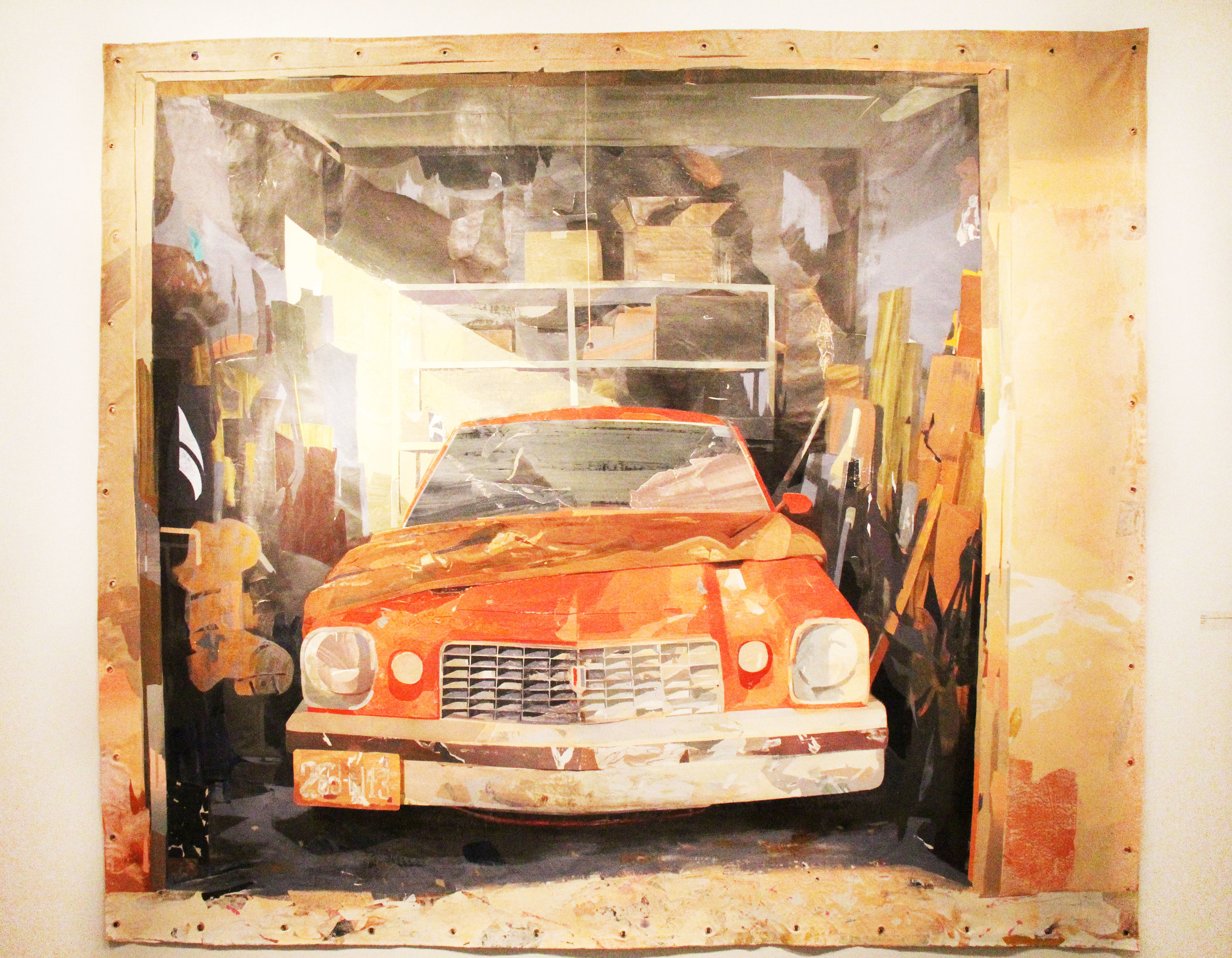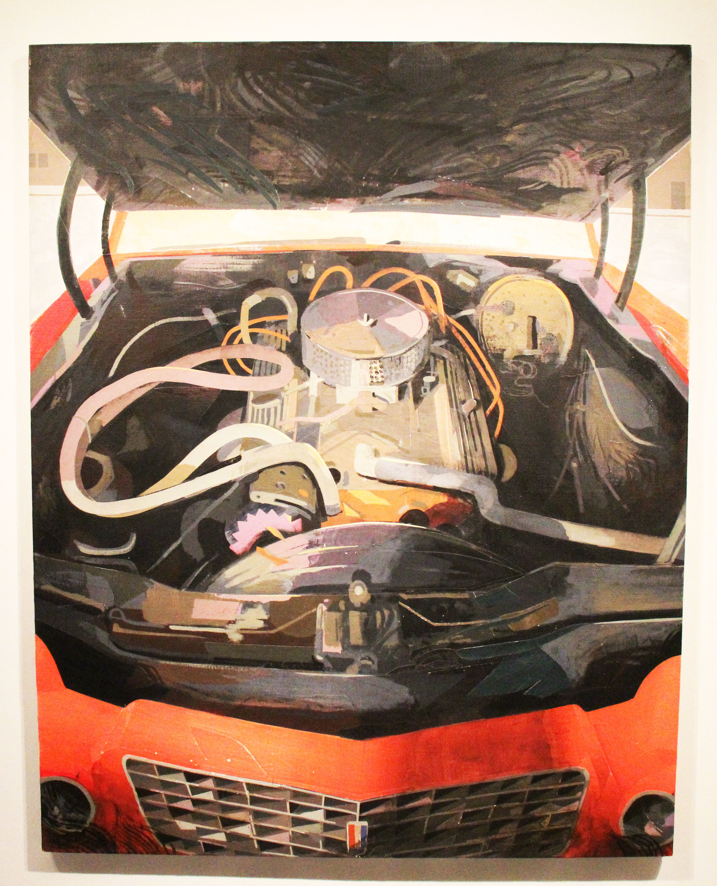 Matt Bollinger: DIY, on display now at the Schick Gallery, consists of many incredible paintings, graphite drawings, and sculptures that each give the viewer a glimpse into Bollinger’s life. Some of the subjects, such as his father and his Camero, make appearances in much of his work. Bollinger noted that this is intentional, and that he even conducted an interview with his father before featuring him in his painting, titled Independence I & II.