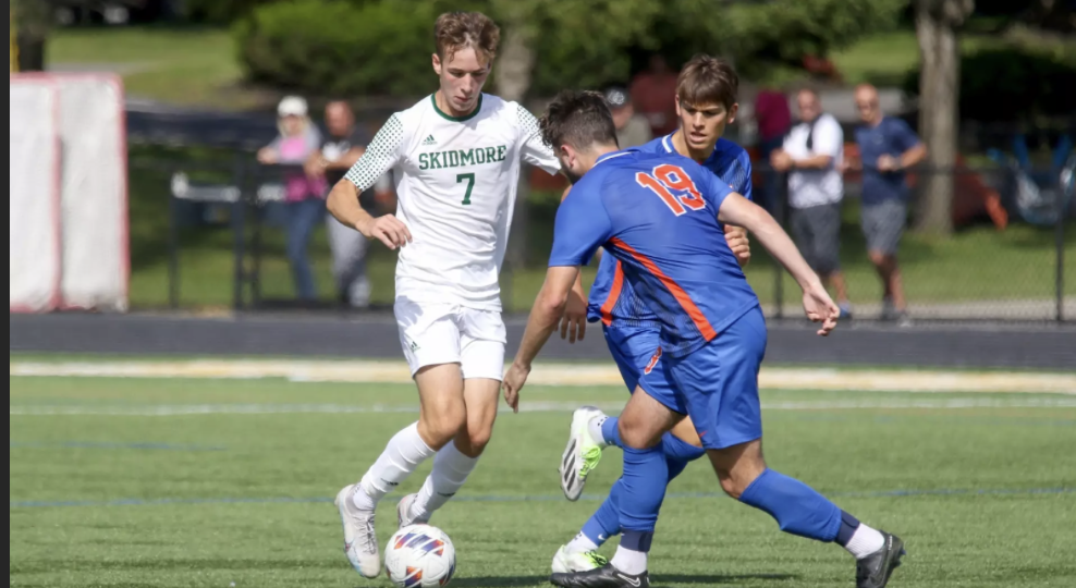 The Skidmore Men’s Soccer Team drew with SUNY Oswego this past Saturday, September 21, by a score of 1-1. After a back-and-forth match throughout, Skidmore notched the first goal of the game in the 83rd minute off a beautiful finish from Junior Midfielder Tobias Catizone. However, Oswego quickly responded with a score of their own two minutes later, as Senior Forward Kyle Hanner cleaned up a rebound goal out in front of the net.